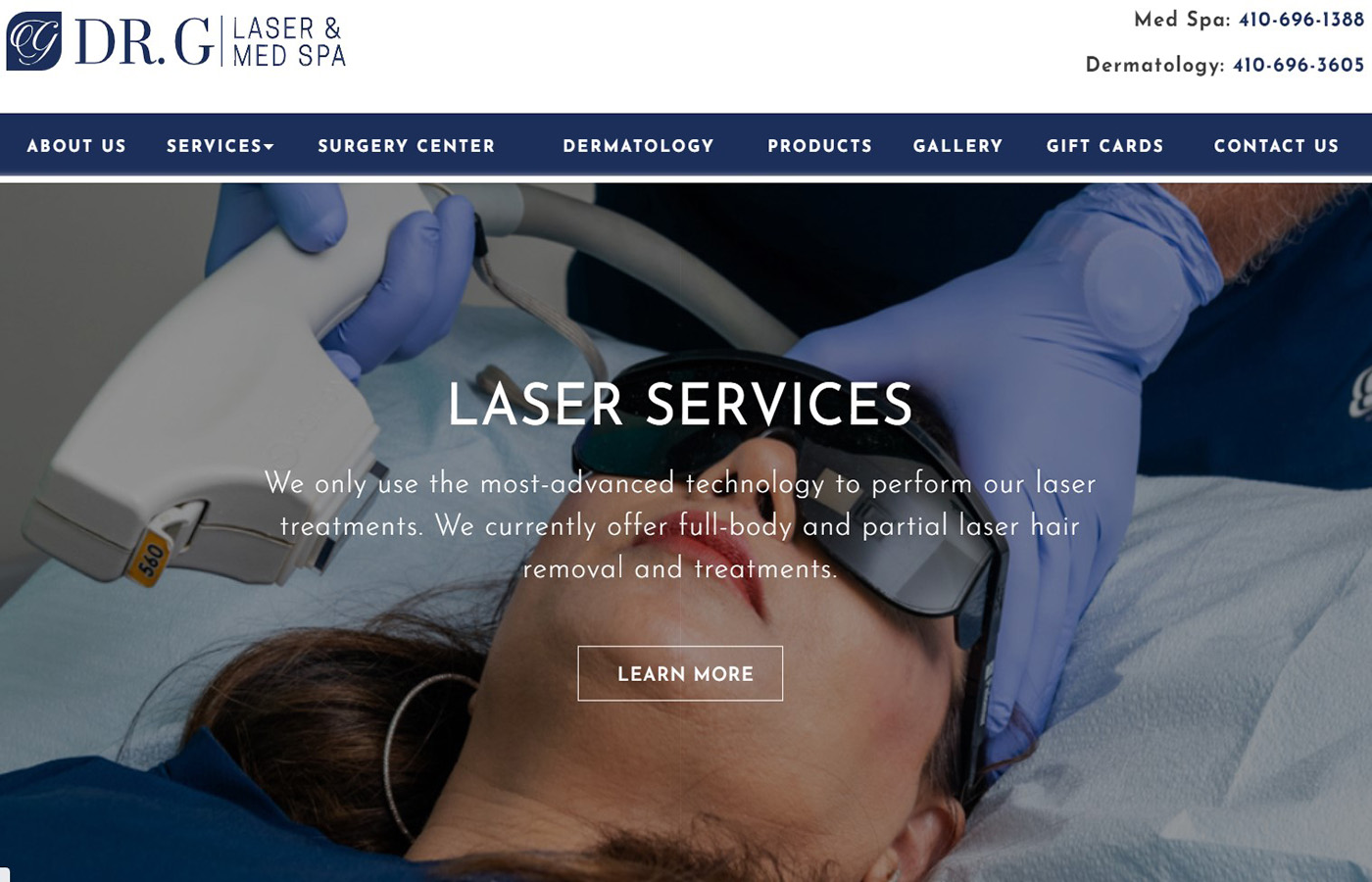 Project information Dr.G’s is a premier luxury Laser and Medical Spa located in Ellicott City, MD. They offer the most advanced skin, laser, and body treatments in the area. We specialize in Hydrafacial, VI Peel, Microneedling, AquaGold, Botox, Restylane Filler, Laser Hair Removal, AviClear and Laser Liposuction. A US-based med spa and laser clinic in Elliot city. We created the …